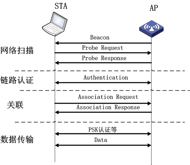 链路认证是无线终端接入无线网络的起点,也是一种对网络表明身份的方式。