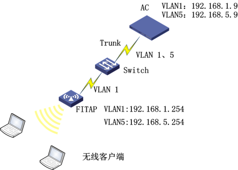 AC(Access Controller,无线访问控制器):无线控制器对局域网中的FIT AP进行管理和控制,无线控制器还可以通过与认证服务器交互信息来为用户提供无线接入认证功能。