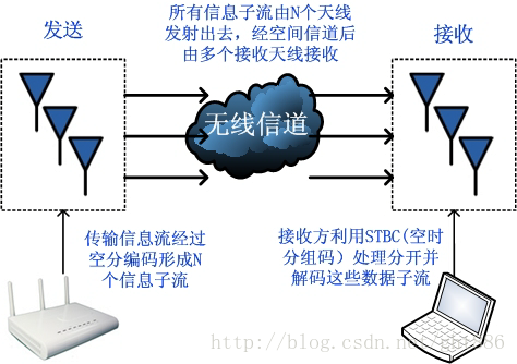 802.11n 将 WLAN 带入了全面的多天线时代。MIMO(多输入多输出)技术是指在发射端和接收端分别使用多个发射天线和接收天线,信号通过发射端和接收端,从而改善每个用户的服务质量(误码率或数据速率)。