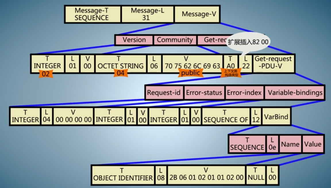 如果 SNMP 报文携带的团体名没有得到 NMS/Agent 的认可,该报文将被丢弃。SNMPV1 是一种简单的请求/响应协议。网络管理系统发出一个请求,管理器则返回一个响应。这一行为的实现是通过使用四种协议操作中的其中任一种完成的。这四种操作分别是 GET、GETNEXT、SET 和 TRAP。