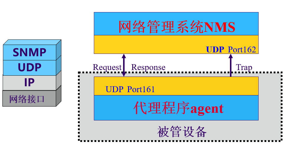 SNMP 代理通过 TRAP 操作不定时的通知 NMS 所发生的特定事件 SNMP 是一种应用程序协议。