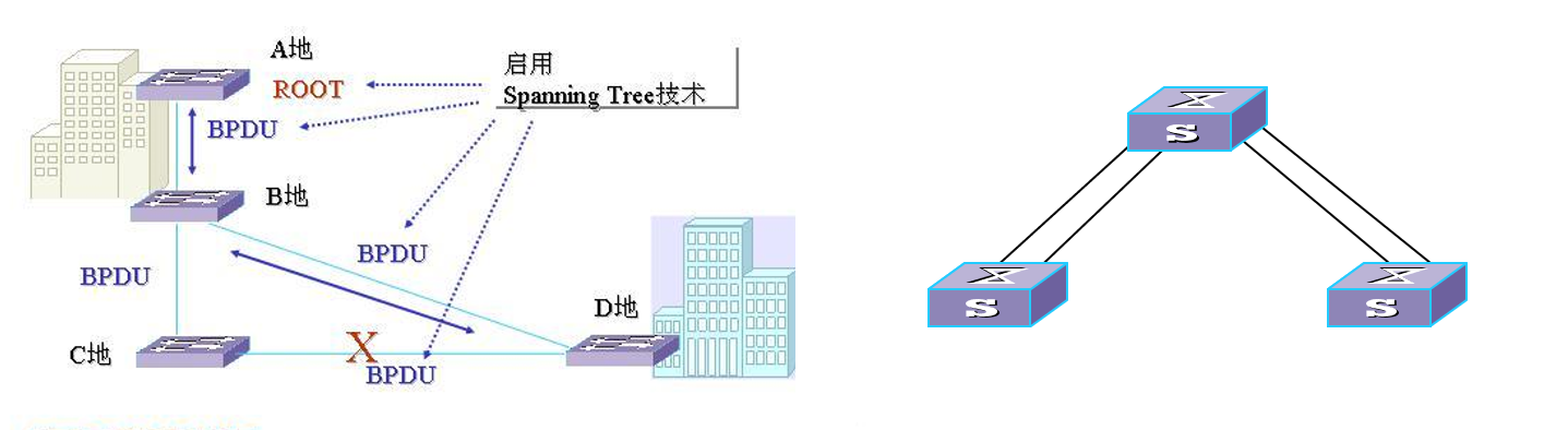 - 使用二层交换机支持的STP协议、端口聚合技术等实现