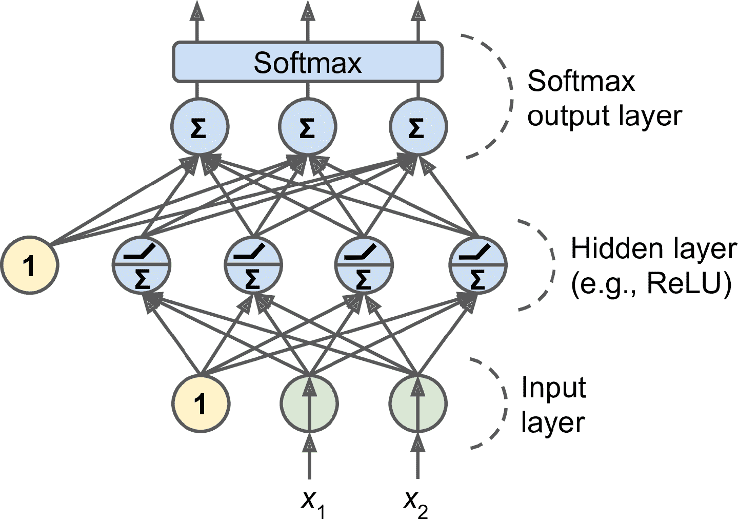 图 10-9 一个用于分类的 MLP(包括 ReLU 和 softmax)