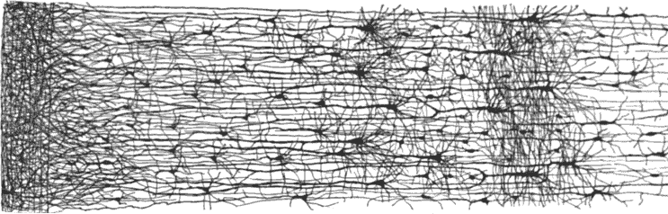 图 10-2 人类大脑皮质的多层神经元网络
