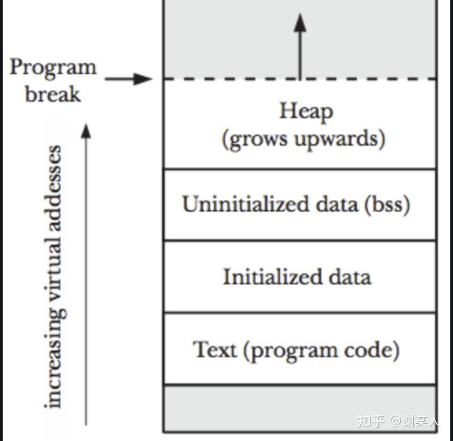 brk, sbrk 用来移动 program break 指向的指针来扩展堆内存,program break 位于堆顶未初始化数据段末尾之后,通过移动 program break 指针来动态控制堆的大小。