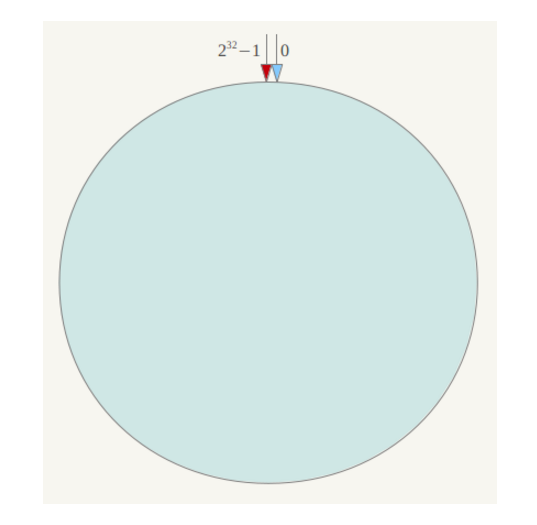 整个空间按顺时针方向组织。0和232-1在零点中方向重合。