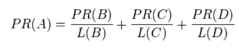 在一轮中更新页面PageRank得分的计算方法:在一轮更新页面PageRank得分的计算中,每个页面将其当前的PageRank值平均分配到本页面包含的出链上,这样每个链接即获得了相应的权值。而每个页面将所有指向本页面的入链所传入的权值求和,即可得到新的PageRank得分。当每个页面都获得了更新后的PageRank值,就完成了一轮PageRank计算。、