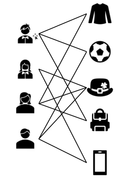 将图中的节点分为两部分。不同部分的节点之间有边连接。但是各部分之间有连接。