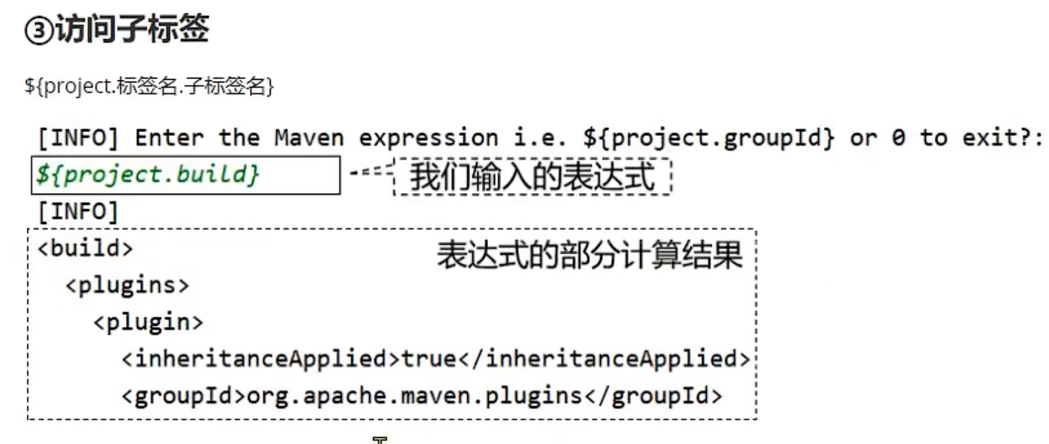 使用表达式${project.xxx}可以访问当前POM中定义的元素值。也就是POM中配置的任何元素都可以用属性值进行访问解析。