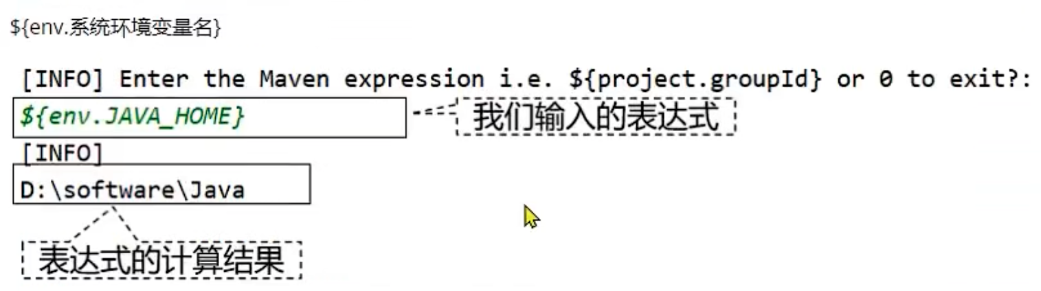 maven能够访问的系统环境变量 使用env前缀能够访问系统环境变量 这里的系统环境变量指的是操作系统env中当前定义的变量 通过${env.JAVA_HOME}实现。