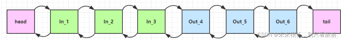inbound/outbound:inbound入站事件处理顺序(方向)是由链表的头到链表尾,outbound事件的处理顺序是由链表尾到链表头。inbound入站事件由netty内部触发,最终由netty外部的代码消费。outbound事件由netty外部的代码触发,最终由netty内部消费。