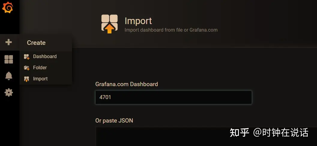 创建 Dashboard,可以自定义,也可以使用官方发布的一些模板,比如4701模板。导入模板后选择我们刚才创建好的数据源即可。