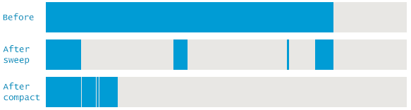 mark-sweep-compact 。Deletion with compacting仅删除未使用的对象效率不高,因为可用内存块分散在整个存储区域中,并且如果创建的对象足够大且找不到足够大的内存块,则会导致OutOfMemoryError 。为了解决此问题,删除未引用的对象后,将对其余的引用对象进行压缩。 这里的压缩指的是将参考对象一起移动的过程。 这使得新的内存分配变得更加容易和快捷。它通常被称为mark-sweep-compact算法。